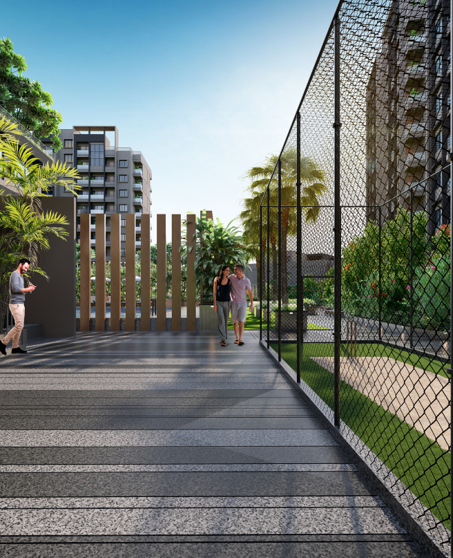 Ram Enclave brings you a lifestyle enriched with thoughtful amenities for all ages. Begin your day at the tranquil Pranayam Centre or enjoy a leisurely stroll through the serene Tree Line Plaza. Stay active at the modern gym, while seniors unwind at the dedicated Senior Citizens Court. The expansive Community Greens and Children’s Play Area create spaces for relaxation and joy, complemented by the Amphitheatre for community bonding and Seating Steps for quiet contemplation. At Ram Enclave, every corner is designed to inspire harmony and togetherness.
